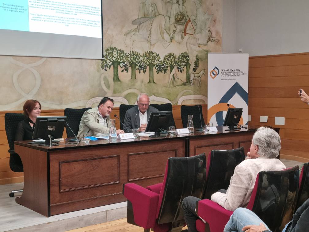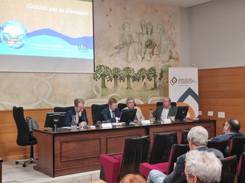 Otras ponencias fueron Retos del olivar en el nuevo Plan Hidrológico, con Francisco Elvira secretario general de COAG-Jaén y Ricardo Martín. Director técnico de CREA Andalucía. Para terminar con la ponencia Diagnóstico ambiental de los recursos hídricos en la provincia de Jaén: de lo global a lo local, con Raquel Jiménez. Profesora Titular del Área de Ecología de la Universidad de Jaén.