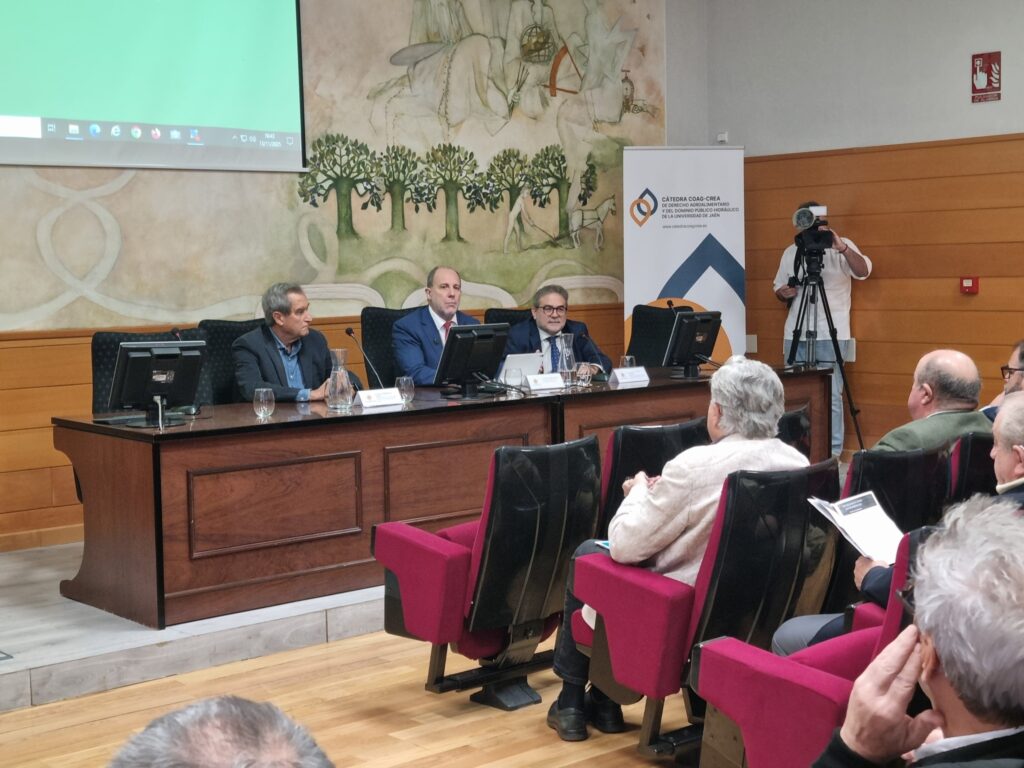 La segunda mesa: Promovida y coordinada por la Cátedra COAG-CREA de Derecho Agroalimentario y del Dominio Público Hidráulico de la Universidad de Jaén. La moderó Alfonso Parras, director de la Cátedra COAG-CREA de Derecho Agroalimentario y del Dominio Público Hidráulico de la Universidad de Jaén.
